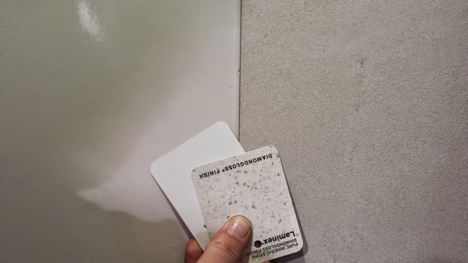 I am also not sold on this busy benchtop. It has a square tight edge profile and it better quality than normal laminex. I would have preferred something lighter.
